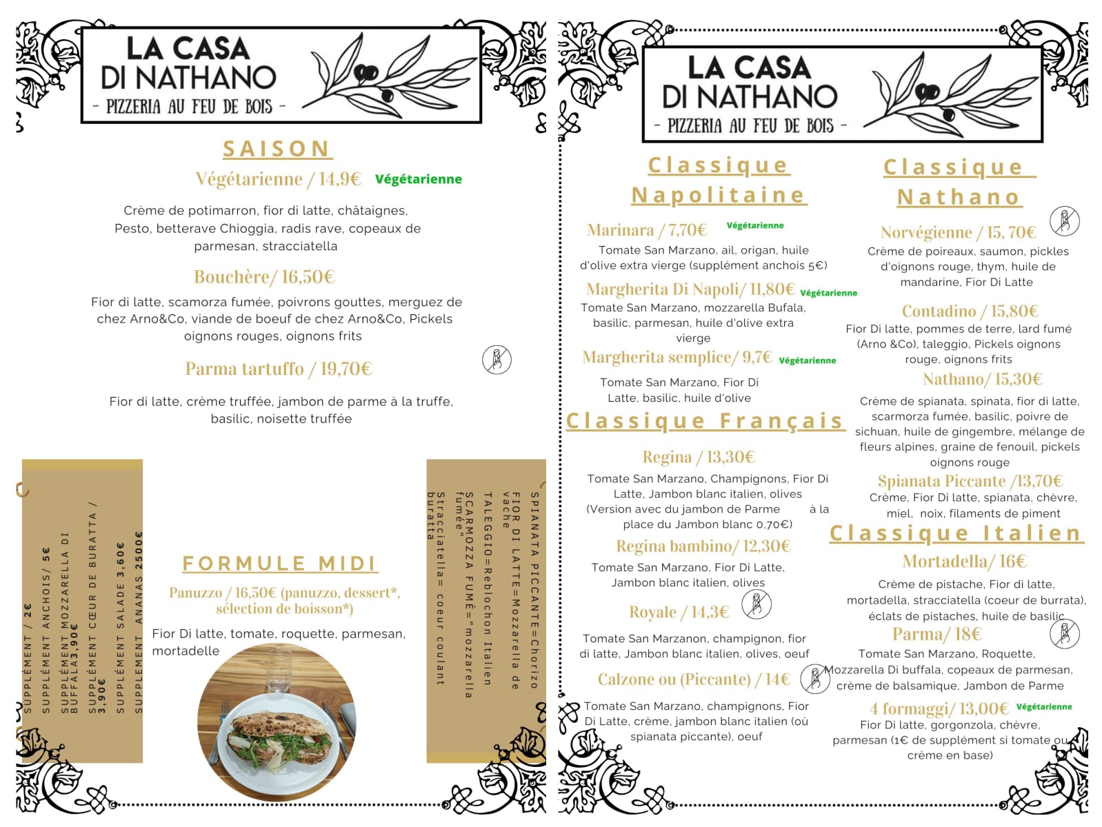 Tout au long des saisons, je vais vous proposer des pizzas intemporelles telles que la margherita, la reine, la calzone. Mais je vais aussi marquer la saisonnalité des produits de notre terroir, en partenariat avec des producteurs locaux, pour vous présenter des créations originales comme par exemple une pizza avec du petit marron et des champignons. Je travaillerai, au rythme du temps, parmi d’autres produits, la tomate fraîche, la fior di latte (mozzarella).